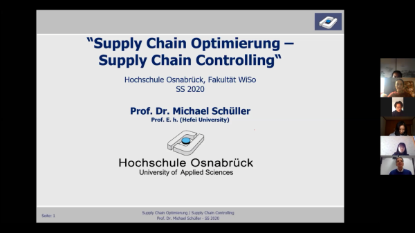 3月9日星期一,德国时间早上7点50分,中国时间下午14点50分,经济与管理学院的同学们在各自家中的书桌前,满怀期待地点开了软件Zoom,陆续登陆进入由中方助课教师注册主持的远程直播教室,做好听课准备。此时,在距离中国合肥一万多公里外的德国奥斯纳布吕克应用科学大学,物流管理(中外合作)德方项目负责人舒勒教授也进入直播教室,完成课件共享和课程直播的最后调试工作。德国时间早上8点整,中国时间下午15点整,2017级物流管理(中外合作)2020年春季学期准时在“云端”开课。