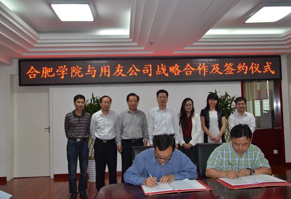 5月8日上午,用友公司副总裁周前进、高级顾问宋国荣、安徽分公司总经理李珊珊等一行来我校交流访问,我校党委副书记丁明,副校长刘建中在行政楼九楼东会议室热情接待了来宾,双方就开展产学研战略合作及支持合肥学院“经营管理企业情境化(企业化)实验实训中心”建设进行了深入会谈并签订战略合作协议,校有关部门及管理系负责人参加了交流会。