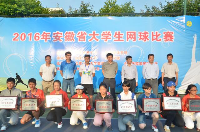 典礼伊始,殷剑巍宣读男子单双打、女子单双打及甲乙丙三组团体赛的前八名名单,许大庆宣读荣获体育道德风尚奖的名单。宣进致闭幕词,他首先对本次比赛的承办单位合肥学院和合肥工业大学的辛勤劳动表示诚挚的感谢。他表示,安徽省大学生首届网球赛事,开启了安徽省大学生网球比赛的新篇章。赛后要积极进行赛事总结,为下一届比赛的顺利举行奠定基础。会后,各代表队队员依次上台领奖并合影留念。