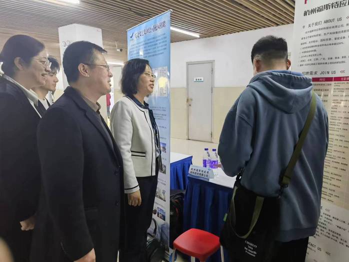 在杭州福斯特应用材料股份有限公司展台前,吴春梅亲切询问了毕业生就业情况,勉励学生学好专业技能,抓住就业机会,做好面试准备,找到理想工作。在合肥量伙半导体设备有限公司展位前,吴春梅深入了解用人单位的岗位需求情况,诚挚欢迎他们对学校人才培养提出意见建议。用人单位充分肯定了我校毕业生的良好素质,希望校企双方建立良好的合作关系,加强就业工作沟通交流。在访企拓岗过程中,吴春梅提出,要持续加强校企合作,加大就业宣传力度,做好就业指导服务,努力提高毕业生就业质量。